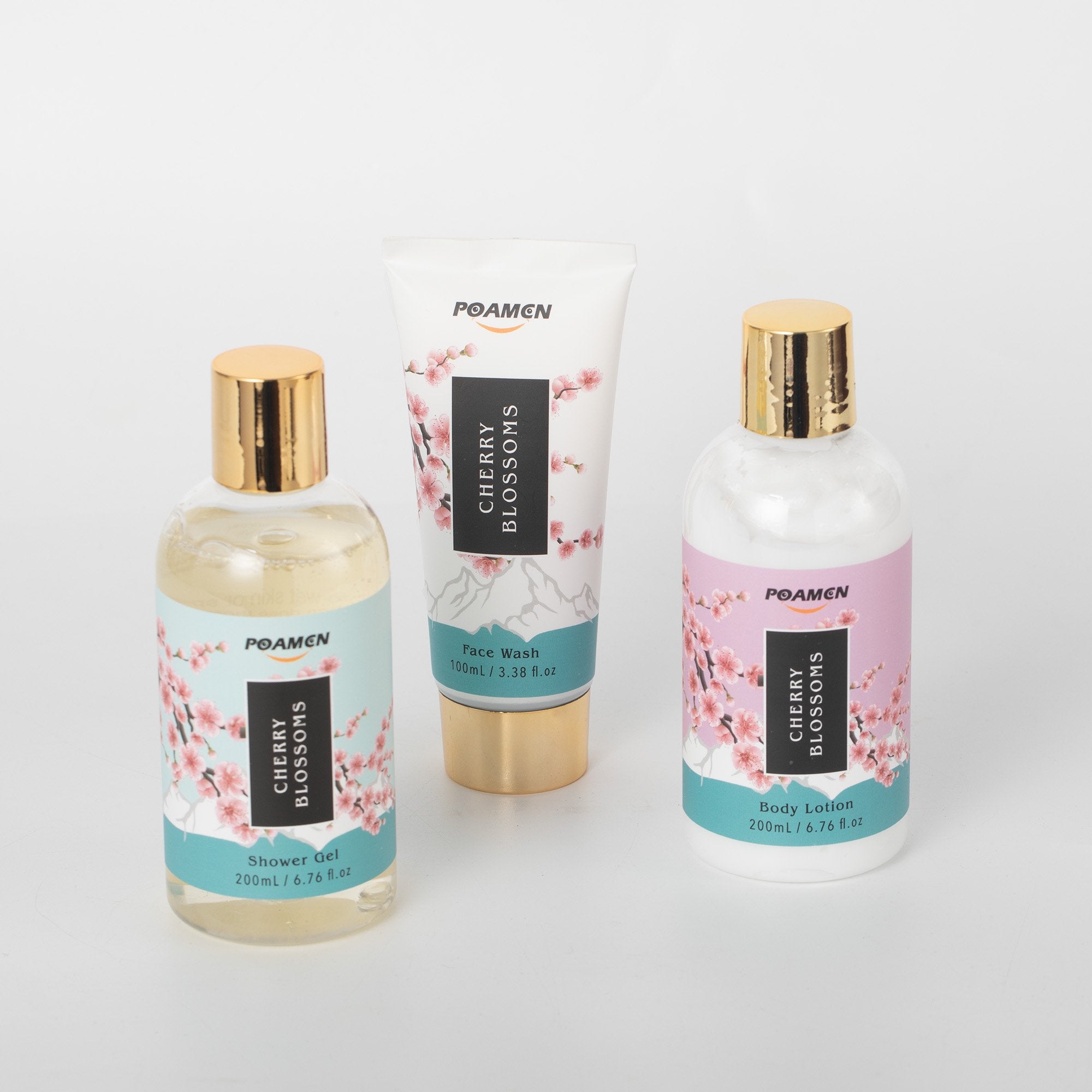 Poamcn Bath and Body Gift Set,Home Spa Gift Set for Women,Japanese Cherry Blossom Scent,3 Piece Set
